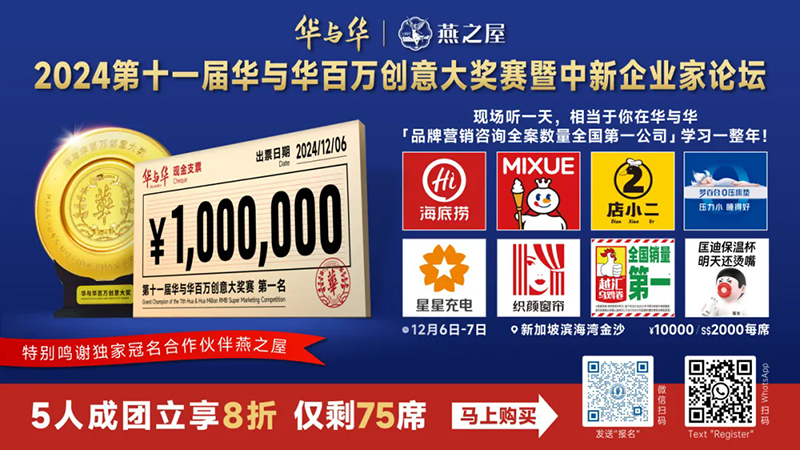 本期文章為你分享的,是燕之屋獨(dú)家冠名的2024第十一屆華與華百萬創(chuàng)意大獎(jiǎng)賽參賽案例“匡迪杯壺”案例解析??锏媳瓑匕咐?,是華與華用一個(gè)超級(jí)符號(hào)創(chuàng)意就改變企業(yè)命運(yùn)的標(biāo)桿案例。