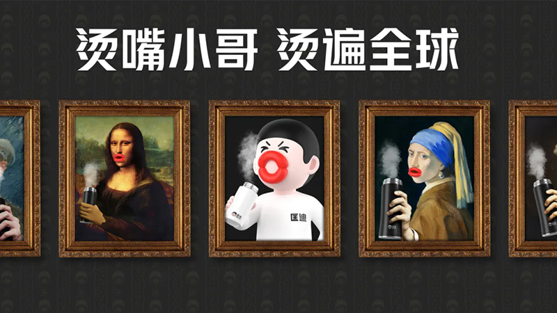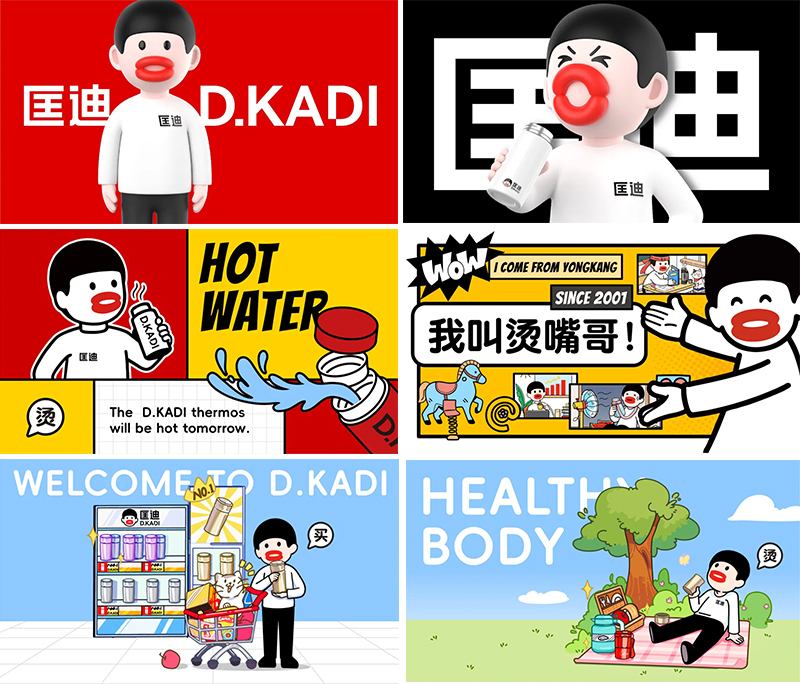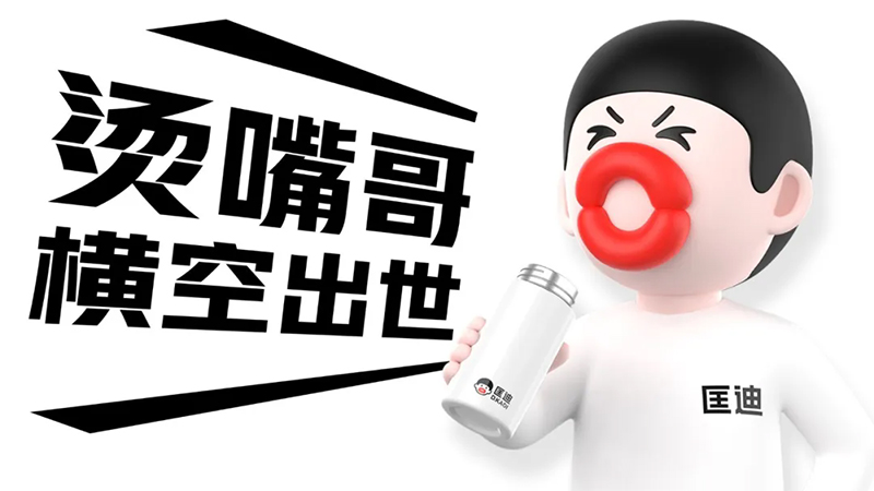 而產(chǎn)品就是我們最大的免費(fèi)媒體,當(dāng)顧客手里拿著杯子的時(shí)候,他得知道它是匡迪的。所以我們首先要讓匡迪的杯子符號(hào)化。我們將燙嘴哥應(yīng)用于匡迪的產(chǎn)品。