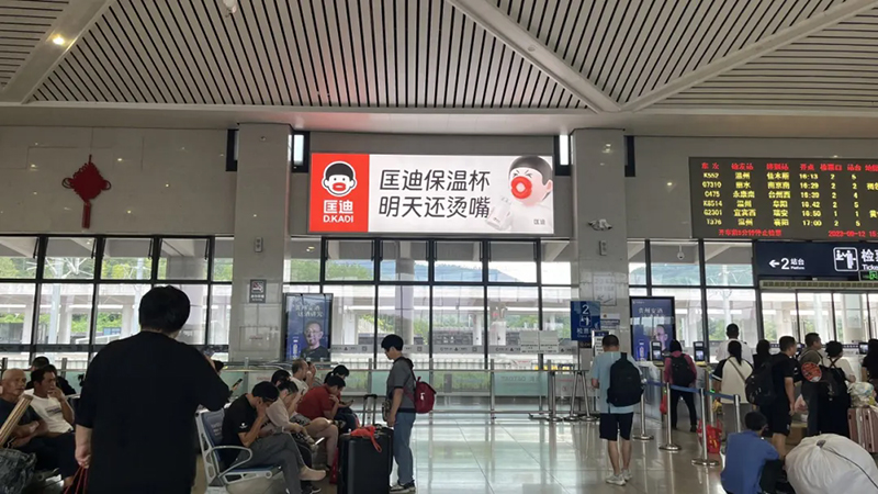 呂總也是當(dāng)場(chǎng)拍板,馬上運(yùn)用。第一時(shí)間開心地在大本營永康高鐵站投了一塊廣告牌,展示我們新的品牌形象。
