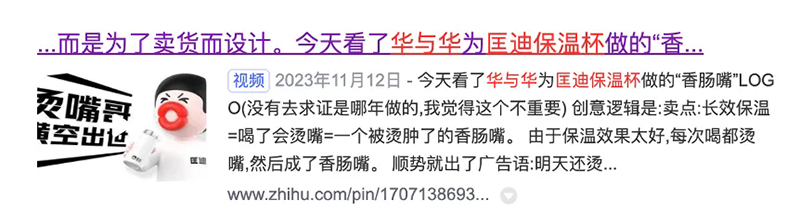 這句話一方面運(yùn)用了人類集體的經(jīng)驗(yàn)和潛意識(shí),另一方面,把原本負(fù)面的“燙嘴”,變成了正向的宣傳,來證明匡迪保溫杯的品質(zhì),傳播我們的品牌名。