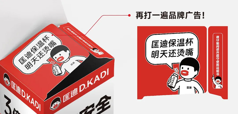 于是我們開發(fā)了“包裝元媒體”,讓包裝不再只是簡(jiǎn)單的包裝,而是會(huì)“說話”的廣告位。一眼看包裝,就知道這個(gè)杯子的購買理由。