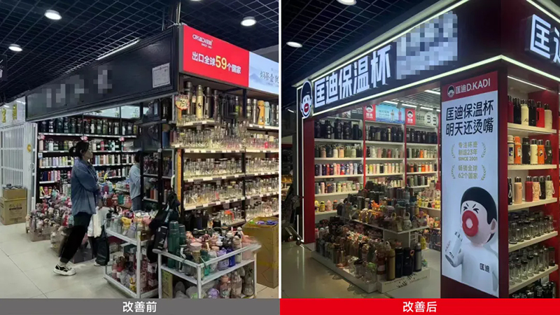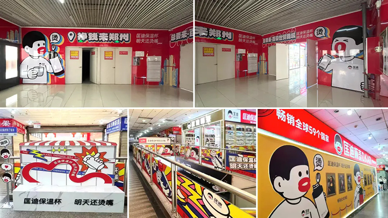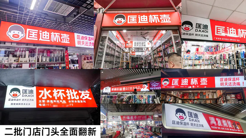 超級(jí)符號(hào)上門頭,讓它們?cè)谂l(fā)市場(chǎng)中成為最亮眼、最具吸引力的成交陣地,讓客戶的客戶也賺錢。當(dāng)你走進(jìn)批發(fā)市場(chǎng),最先撲面而來的就是那醒目的匡迪保溫杯門頭。
